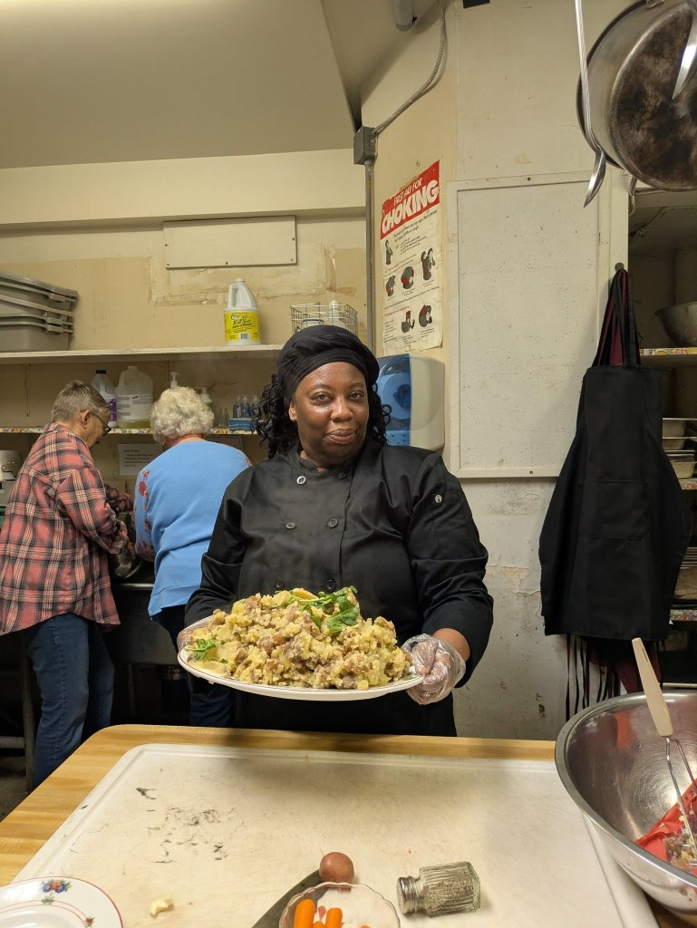 January 31, 2025 – Nancy and I ended up at a restaurant in the middle of an economically depressed neighborhood in Albany on Clinton Avenue. We were there to visit Allie B’s Cozy Kitchen so we could meet with Allie B herself! What a powerful, committed, faith-filled woman! She is helping us kick off Food Is Medicine with a series of cooking classes (more on those later!!)